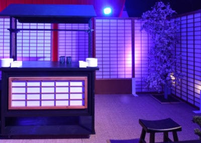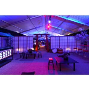 Japan is a traditional country where the Japanese respect tradition and have formed cultural ideas for years. With an amazing history, culinary repertoire and beautiful majestic landscapes Japan is a popular international theme. Combine illuminated blossom trees with rice paper screens, low tables and stool to create instantly a Japanese feel. We have bonsai trees you can use to create zen gardens and all sorts of lanterns to fill the sky. Other notable props include our carts, umbrellas, torii gate and samurai armour.