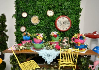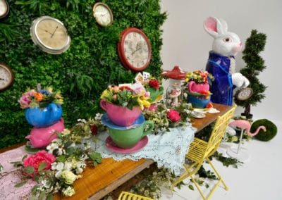 Recreate that iconic afternoon tea party and go mad with props such as the white rabbit, a giant Mad Hatters hat, a giant clock and large tea cups. You can also use our array of chairs and tables to create the setting and add touches of green to create that enchanted garden. Why not add some Alice in Wonderland themes such as our card soldiers, chess board, thrones and magical door with keyhole.