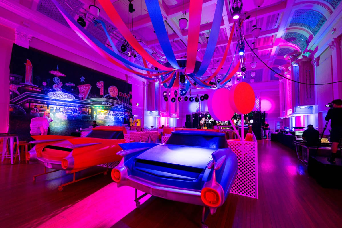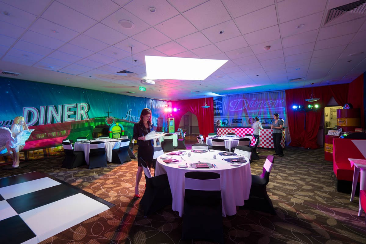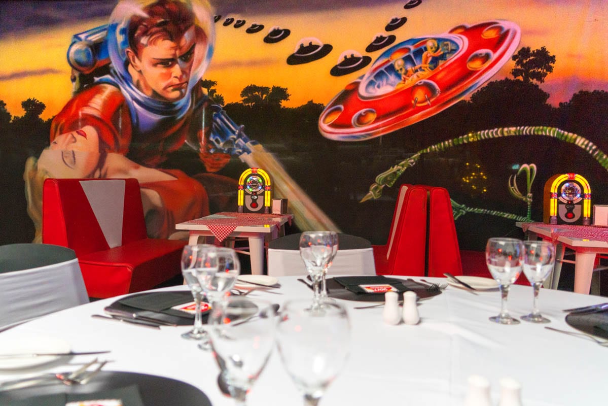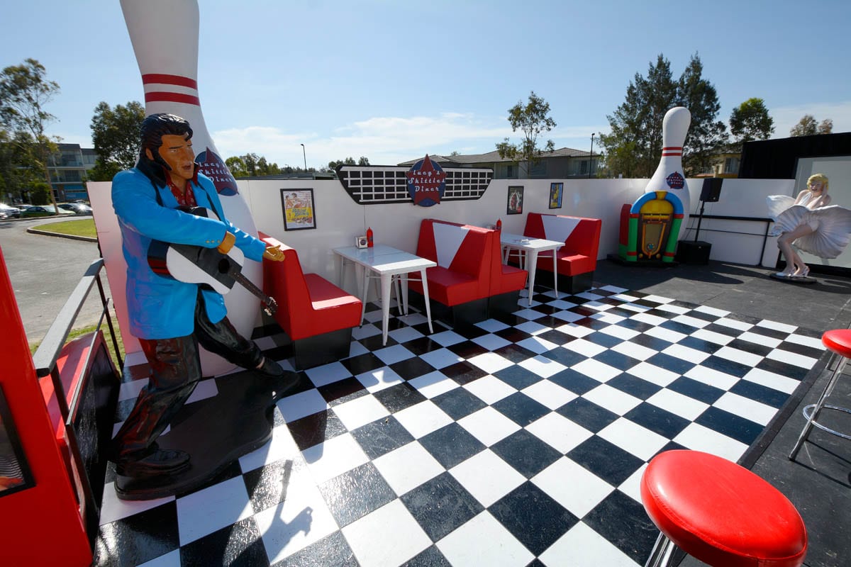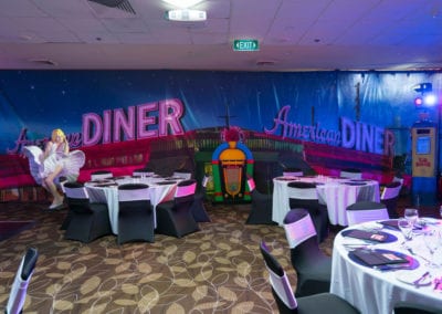 Auto shops and milk bars featured in many films of that era and here at Sydney Prop Specialists, our prop makers and stylists have put together a colourful assortment of props and painted backdrops that will transport your guests back to a 50’s auto shop and milk bar. With life size Elvis and Marilyn from that dress scene in “The Seven Year Itch”, giant ice-cream Sundays and bags of movie popcorn, car boots for beverages and food, petrol bowsers, hot rods and 44 gallon drums – the scene is set for your themed event..