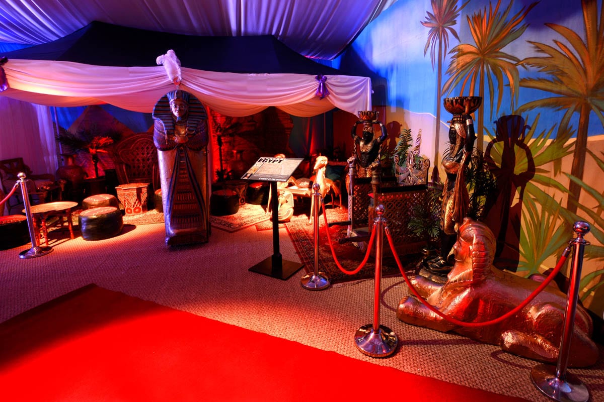 Cleopatra was a great ruler of the Egyptian Kingdom which was wealthy and powerful. She lived amongst pyramids and had gold and other riches at her fingertips. Although she had many preoccupations, she admired beauty and grandeur. Create her world with our Egyptian statues, high back gold cane chair, palms and sphinx statue. We also have a large range of cut-outs with camels, Tutankhamen and other Egyptian relics you can use to create the environment required.