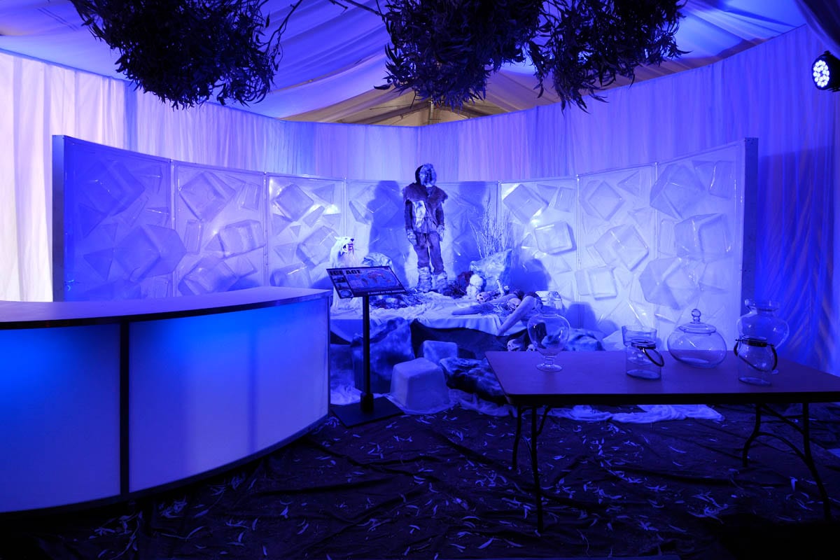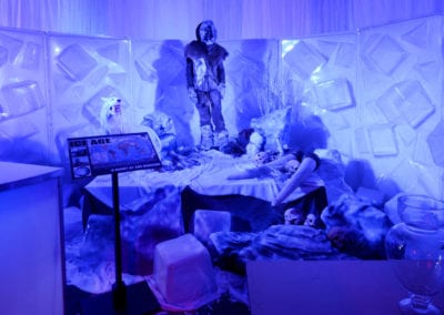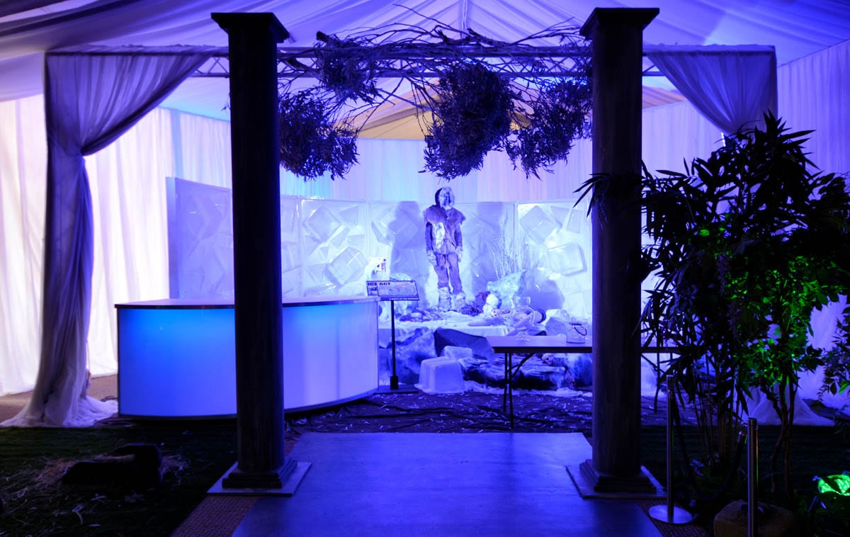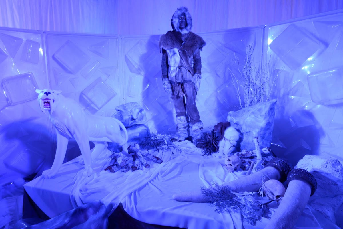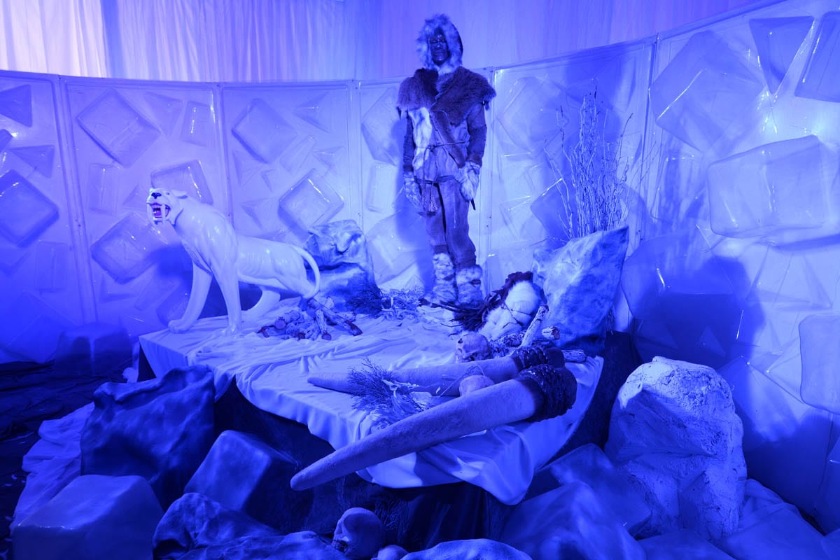 This theme features large walls of ice and a caveman mannequin with blue lighting to bring it to life. We also have boulders, backdrops and cut out animals..