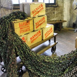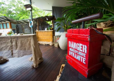This could be a breakout room for training or a series of vignettes scattered around a large room for a gala dinner and presentation, with table centrepieces in the same theme. Of course all our props are available to hire as individual items – gas masks and dynamite are popular single items that can be used with other themes such as Super Hero.