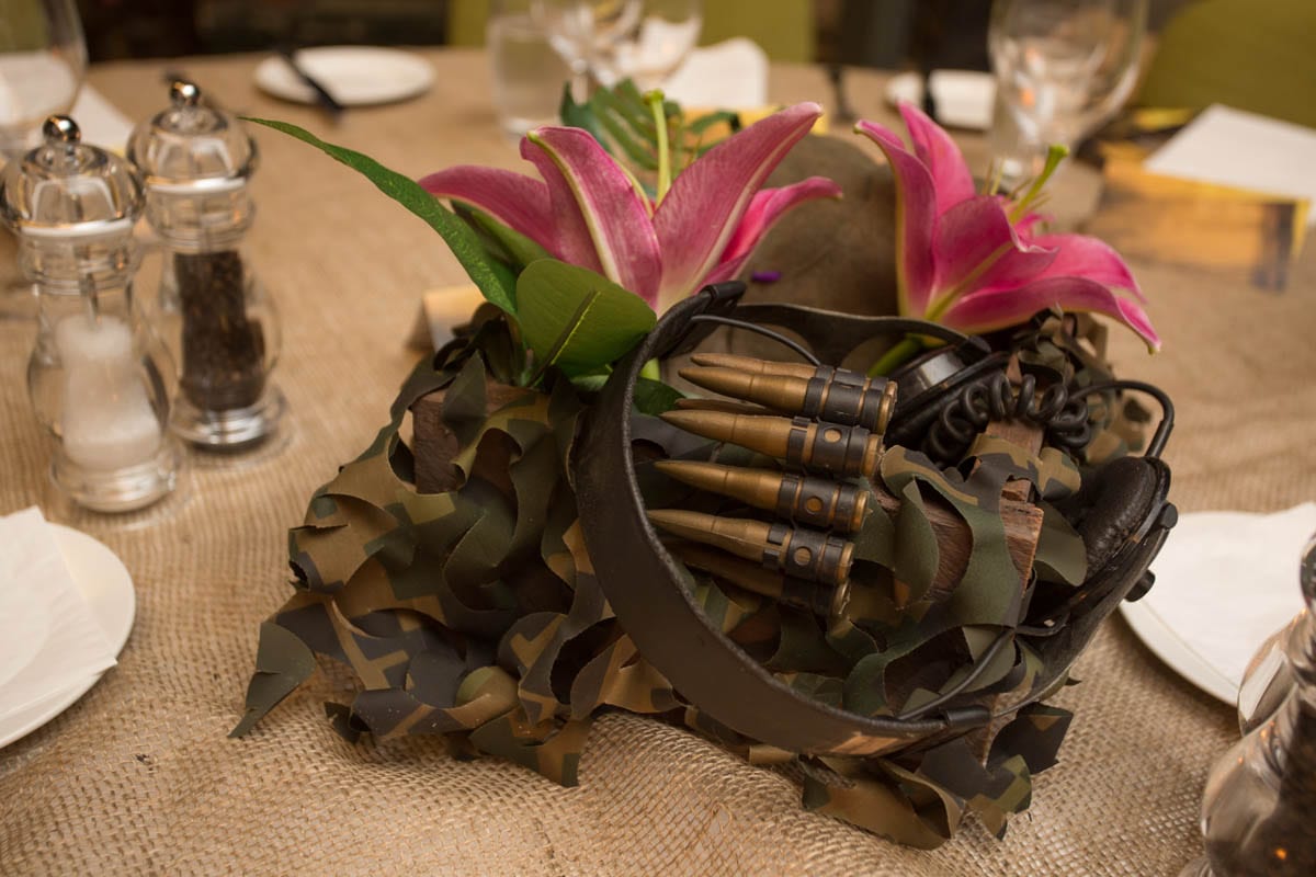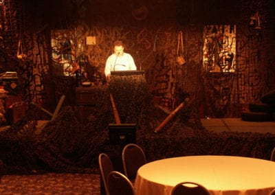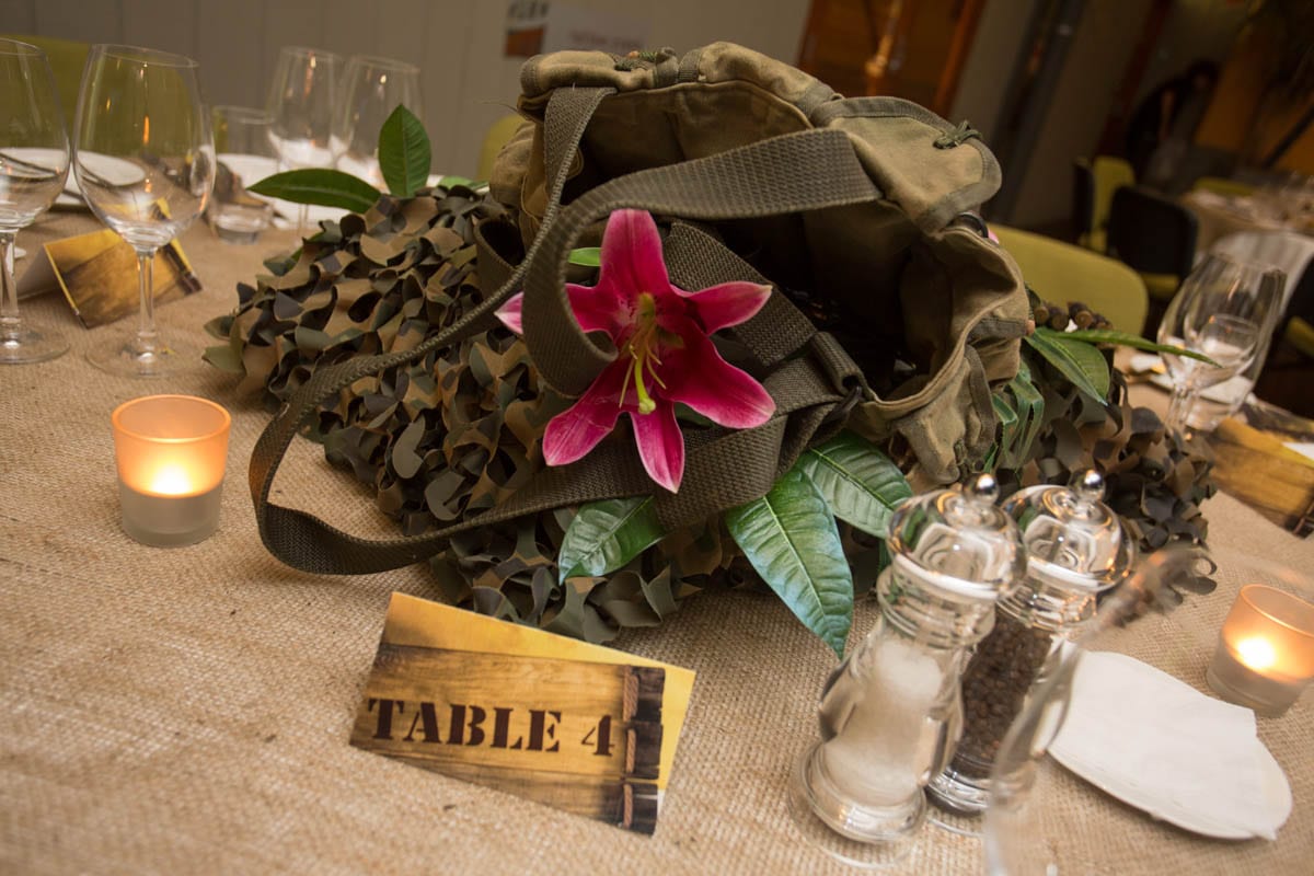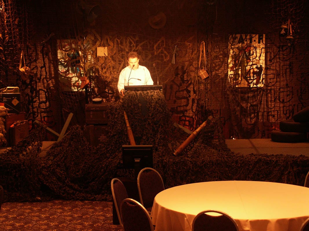 Army Theme and Prop Hire | Command Post, hospital, bivouac. Camouflage netting, sandbags, army equipment, jungle, desert setting, foliage, custom styling.