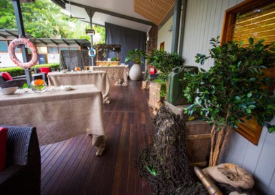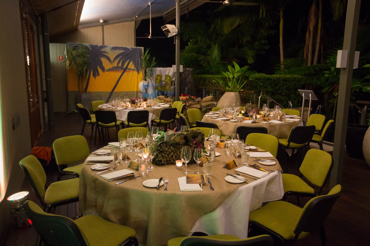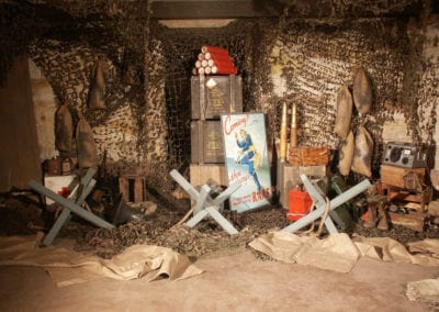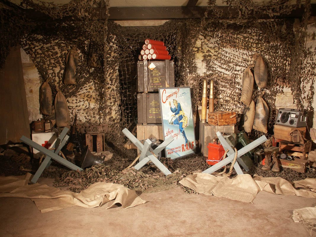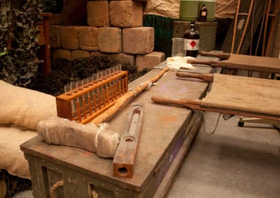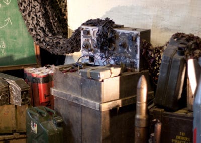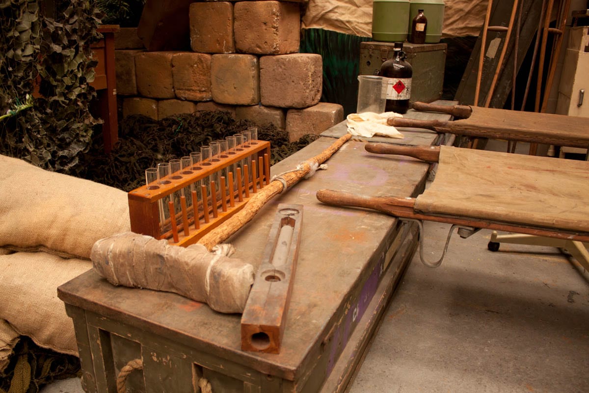 Our army theme sets the scene – a command post last century; tents and camouflage netting, sandbags and canisters, jerry cans, crates and boxes, ordinance, first aid equipment and large industrial fan set pieces. In the background we see jungle backdrops and foliage.