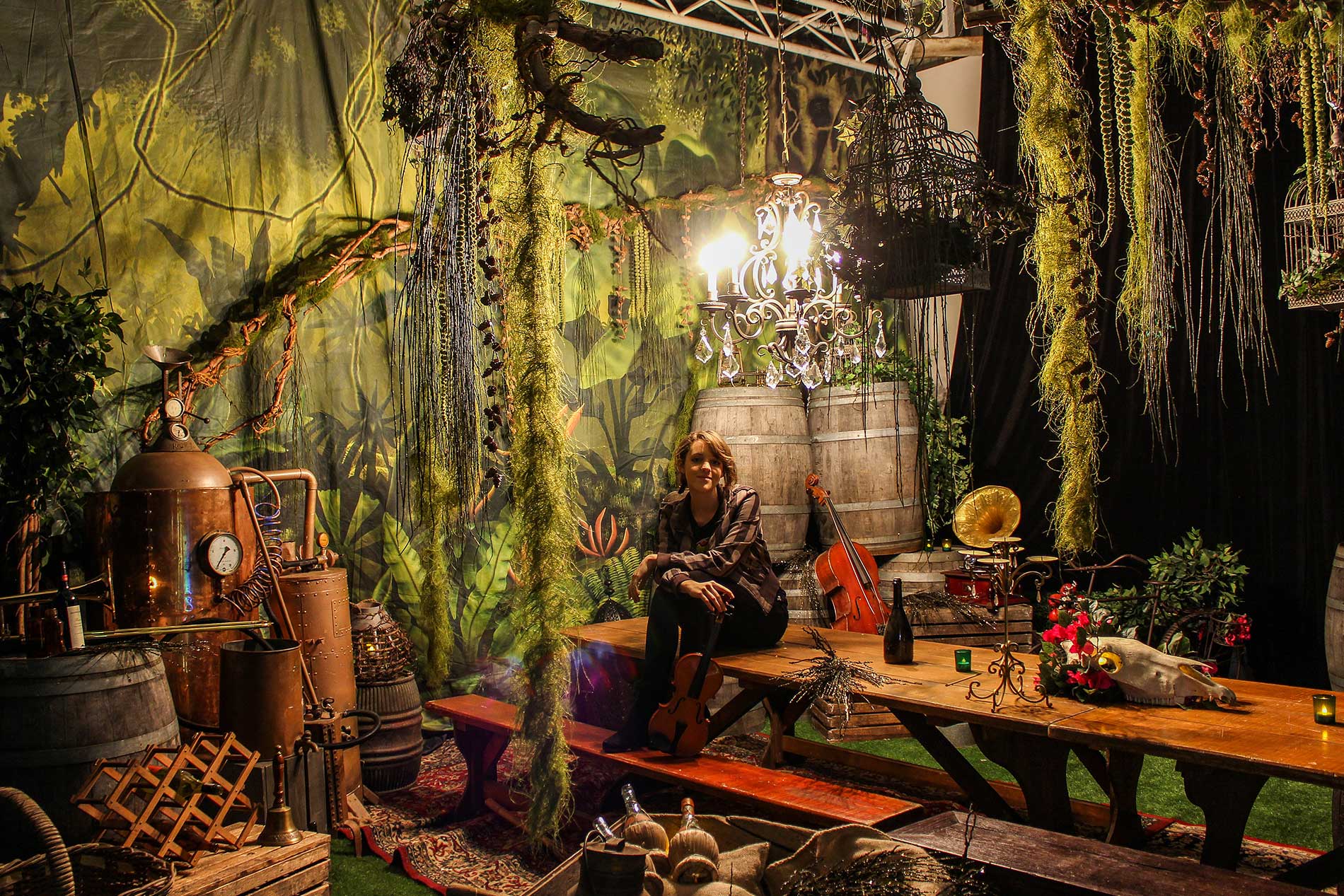 Let your imagination soar like Peter through the skies of Neverland. See Captain Hook and his pirate crew unloading stores, guns and cannon balls on the beach, along with gilded chests and piles of treasure, golden urns, casks of rum other pirate loot. Feast at a rustic banquet table hidden in the lush green forest depths, surrounded by the eclectic flotsam and jetsam collected by the Lost Boys on their foraging trips across the island. See the twinkling lights overhead as Tinkerbell darts this way and that through the leafy canopy and feel dreamy with the warming glimmer and flickering glow of lit candles in their rustic candelabras.