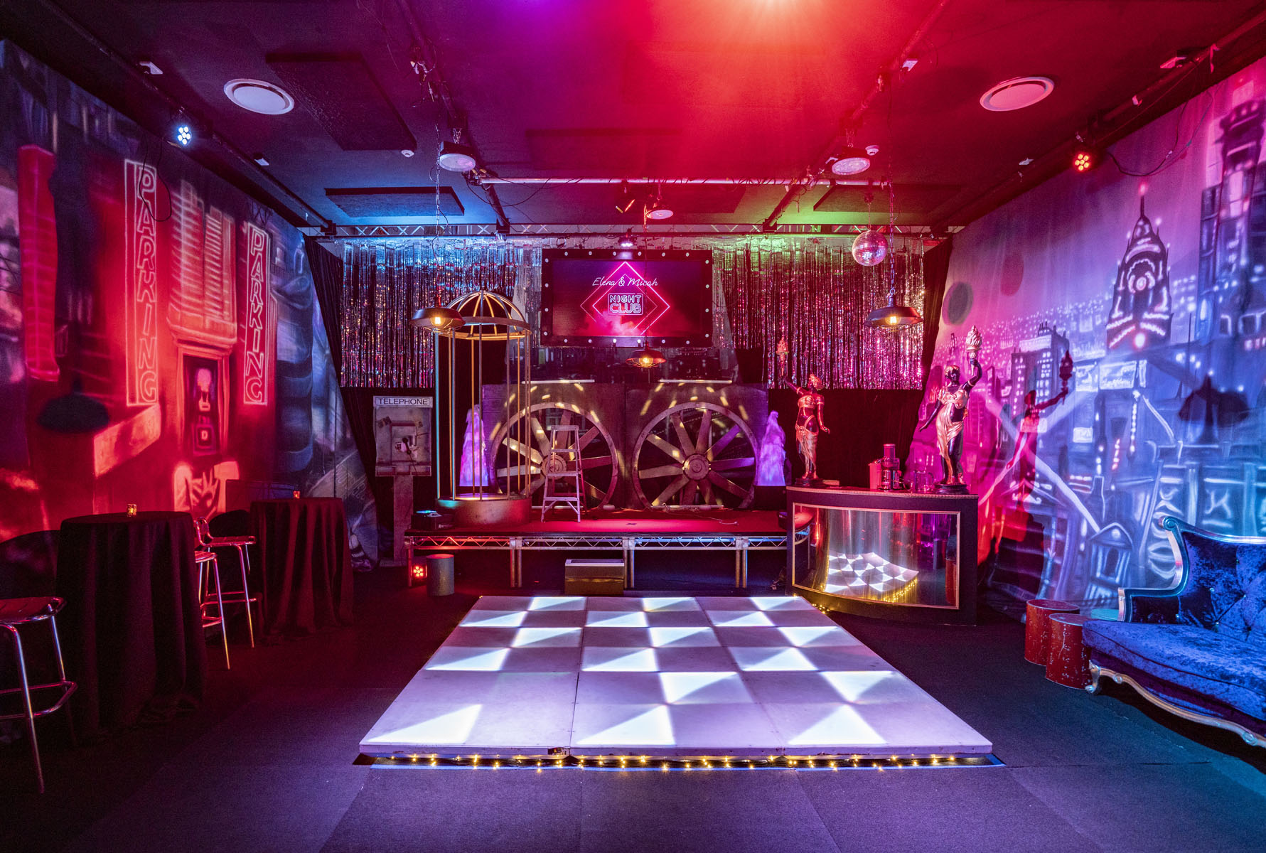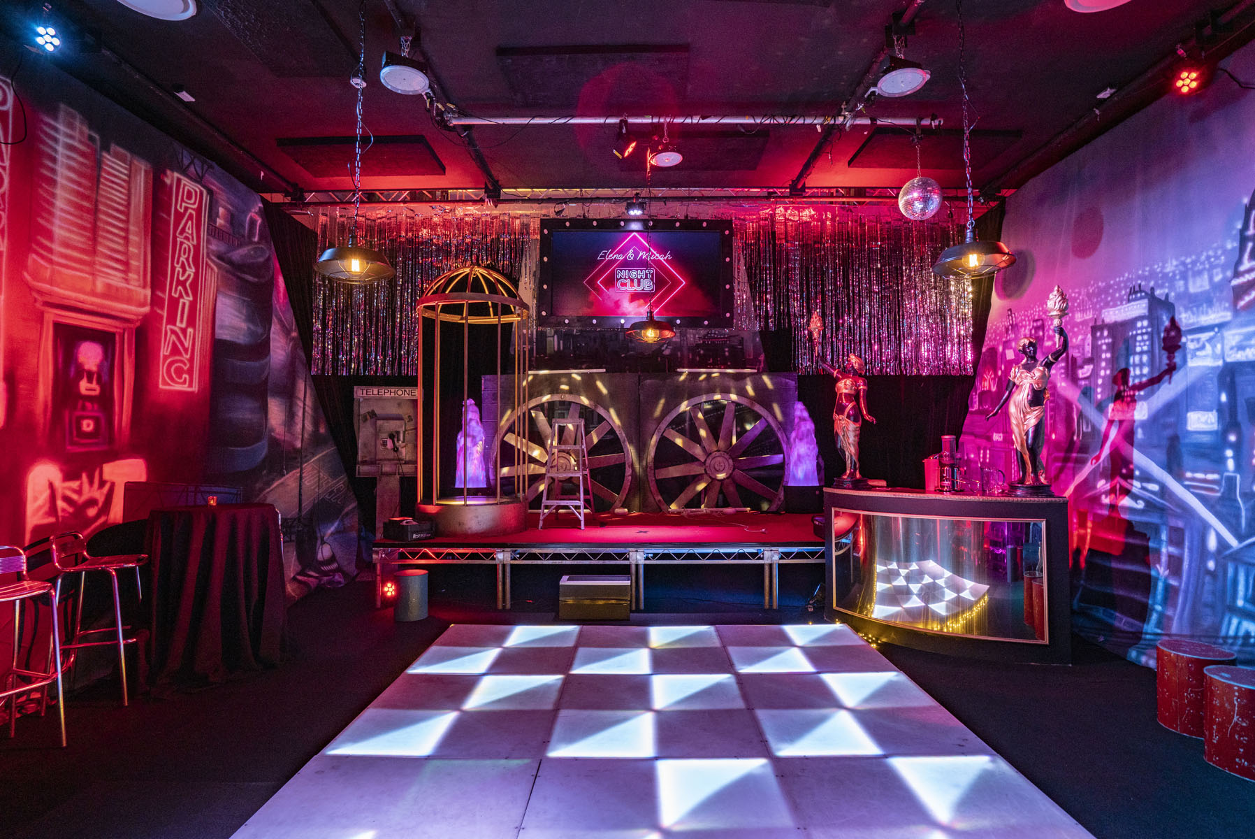 Our Nightclub Theme mixes industrial underground with Great Gatsby chic.
