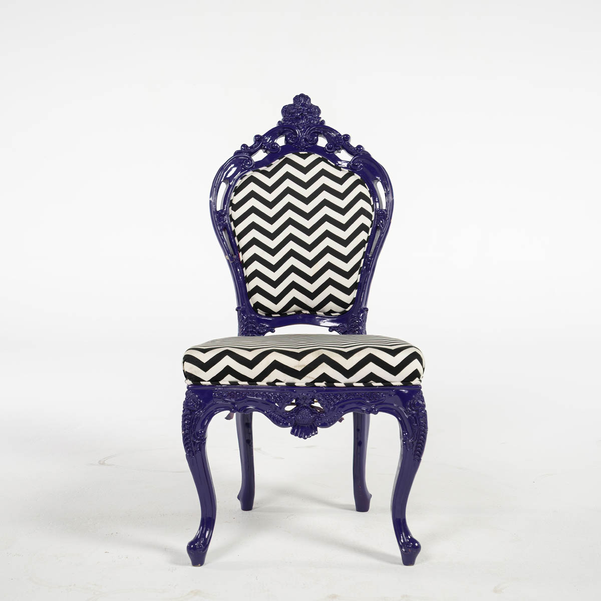 Alice Chair – Black and white zig-zag pattern on seat and back with purple frame chair