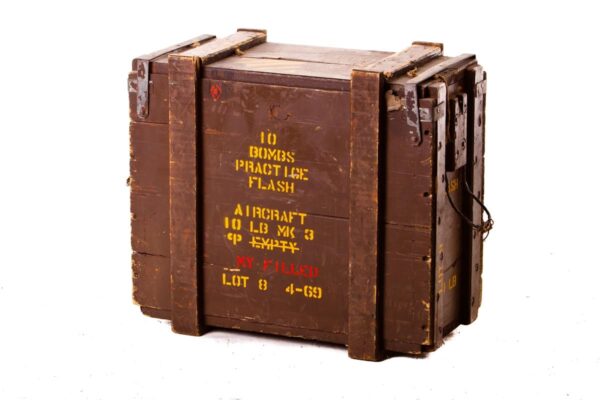 Medium size ammunition box/crate - metal. Suit military, army, war themes.
