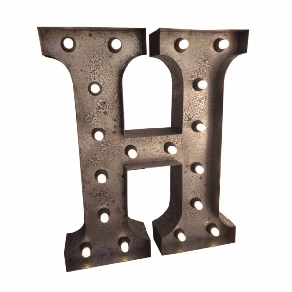 Marquee Light in rust vintage finish. Comes with LED globes.