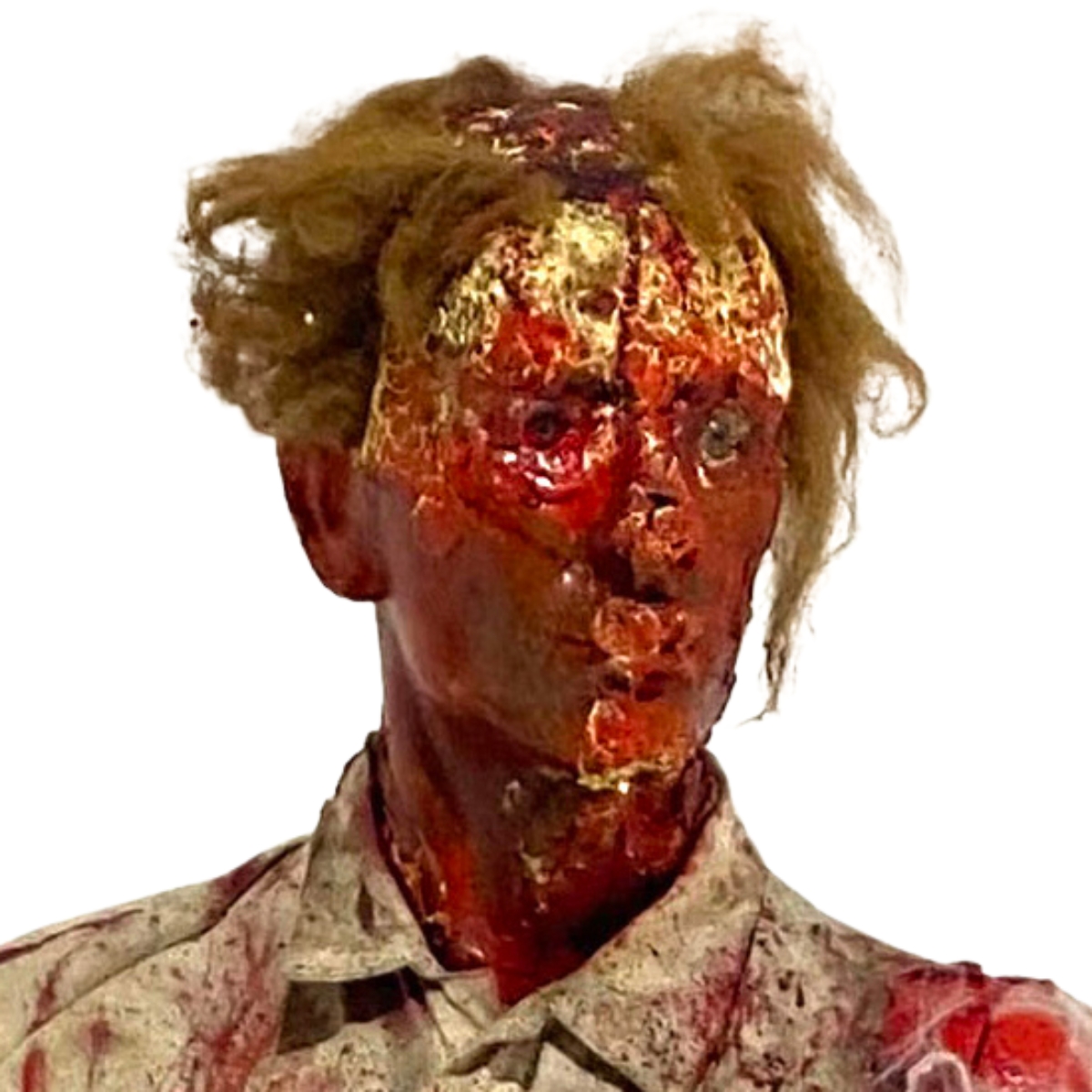 Life size horror - halloween doll. Jason - Fri 13th style wearing white overalls.