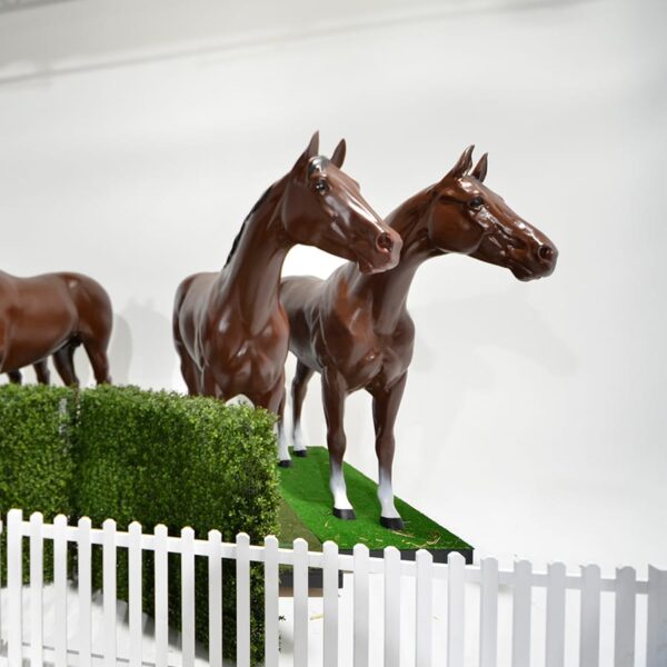 Life size brown horses made from reinforced fibreglass - on trucked platform