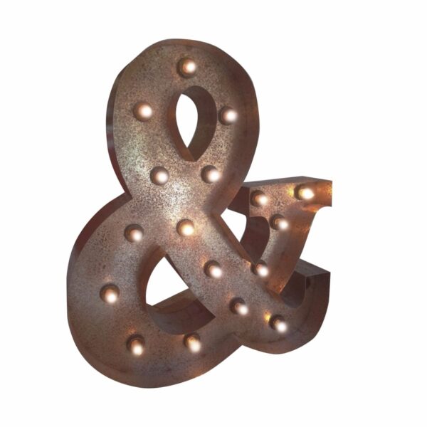 Marquee Symbol in rust vintage finish. Comes with LED globes.