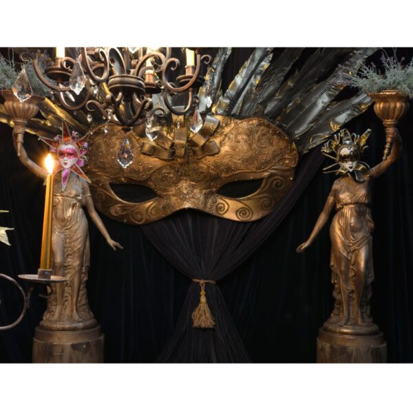 Large gold mask with Black Florals + Silk Florals - ask staff for current image