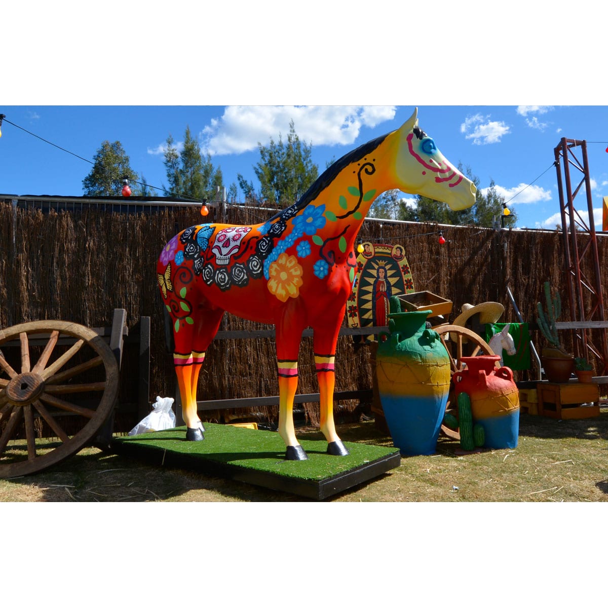 Colourful painted Mexican life size horse. Can be used with Mexican cart