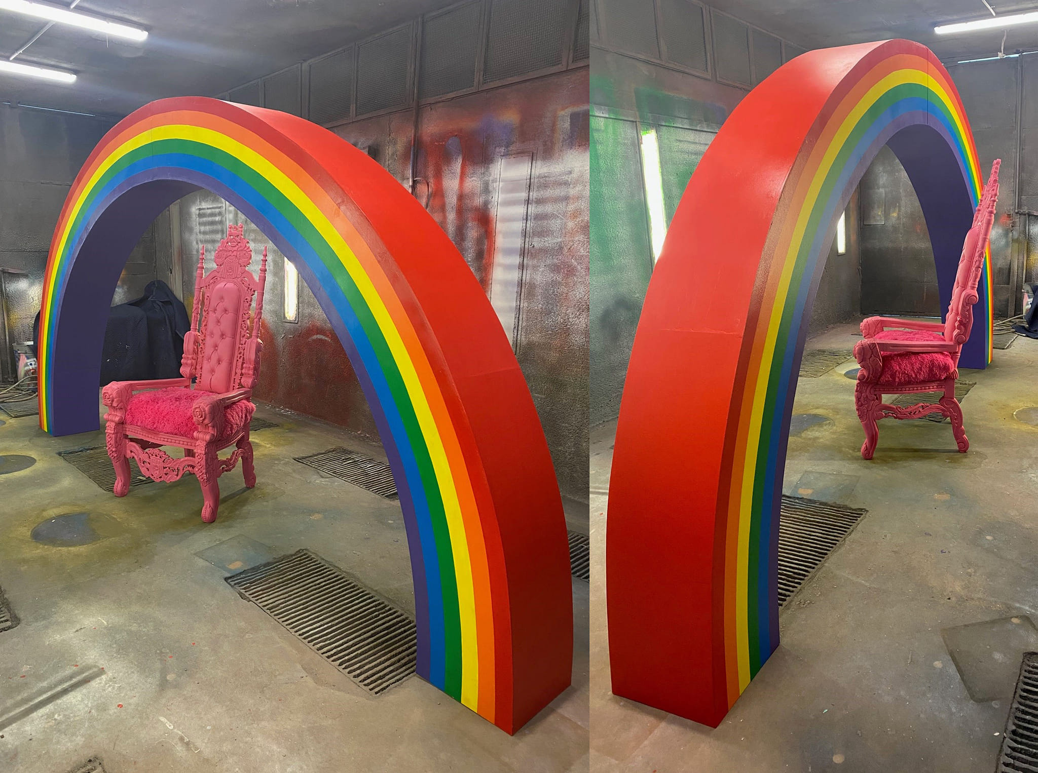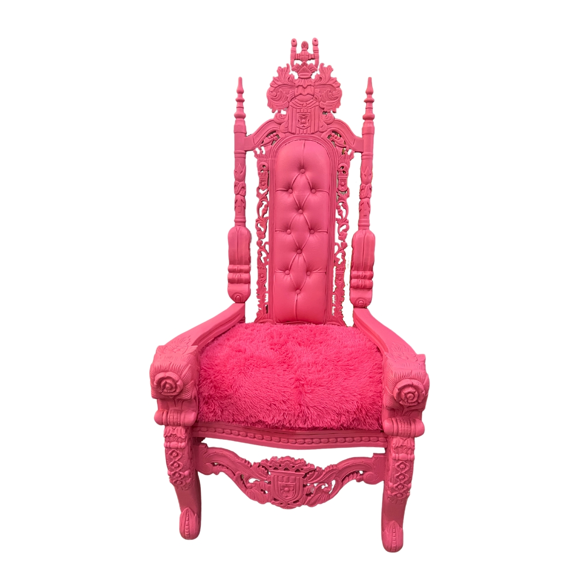 Throne frame and material all in pink colour + cushion made from synthetic fur.