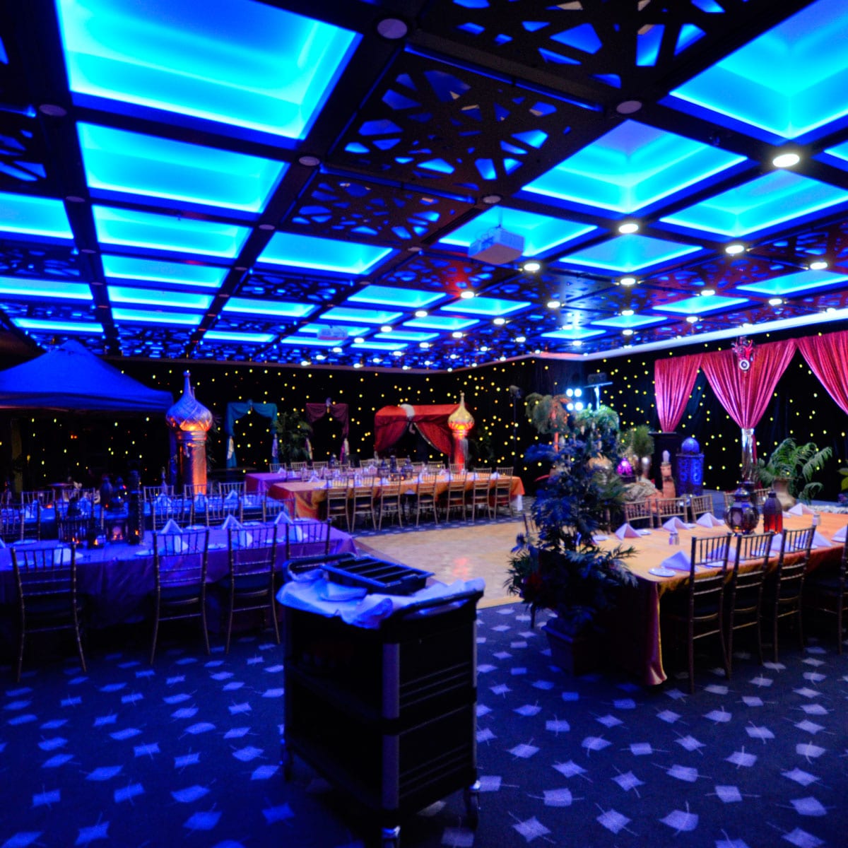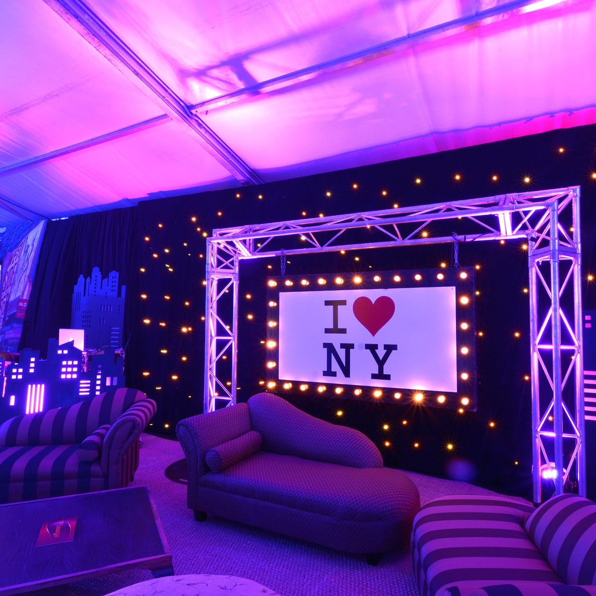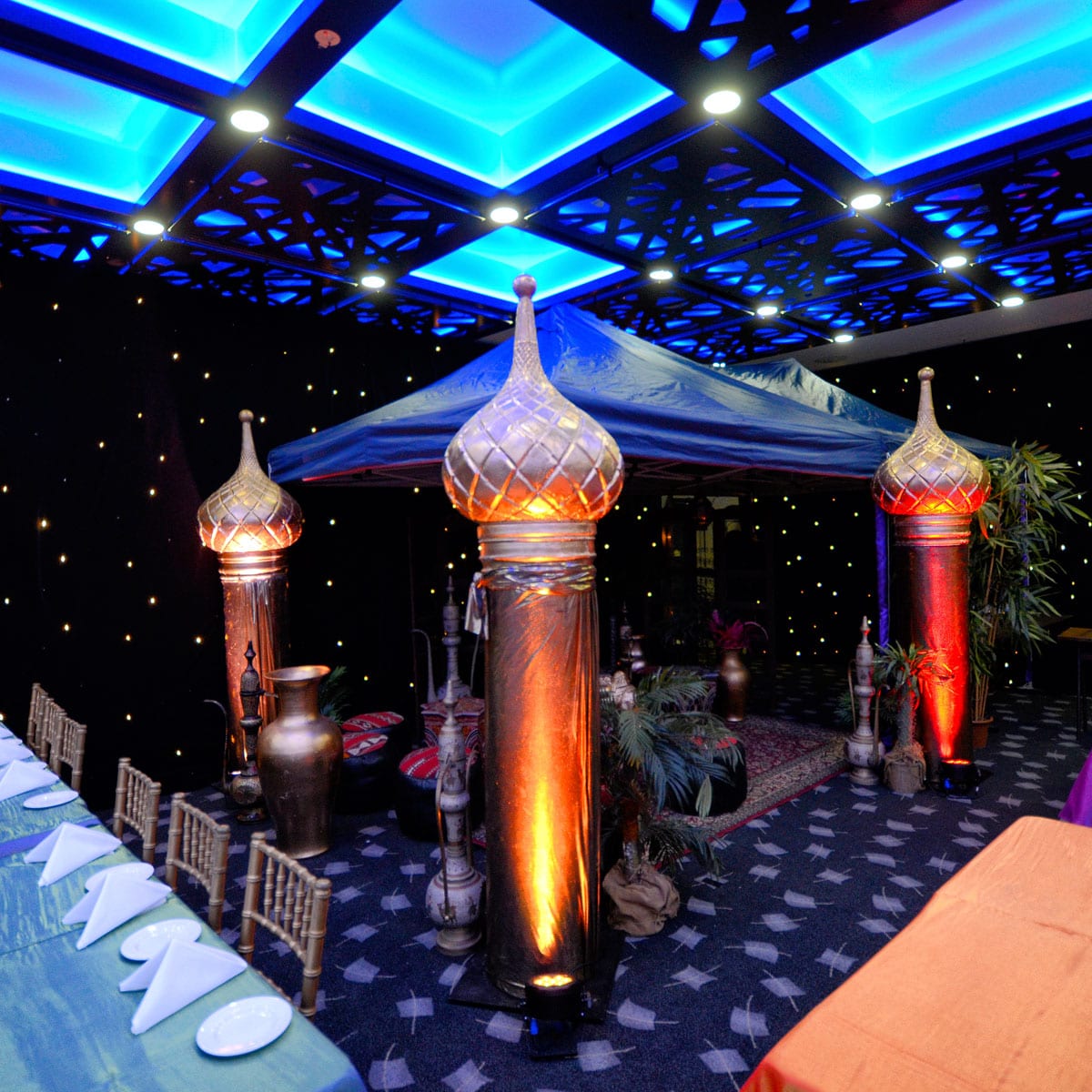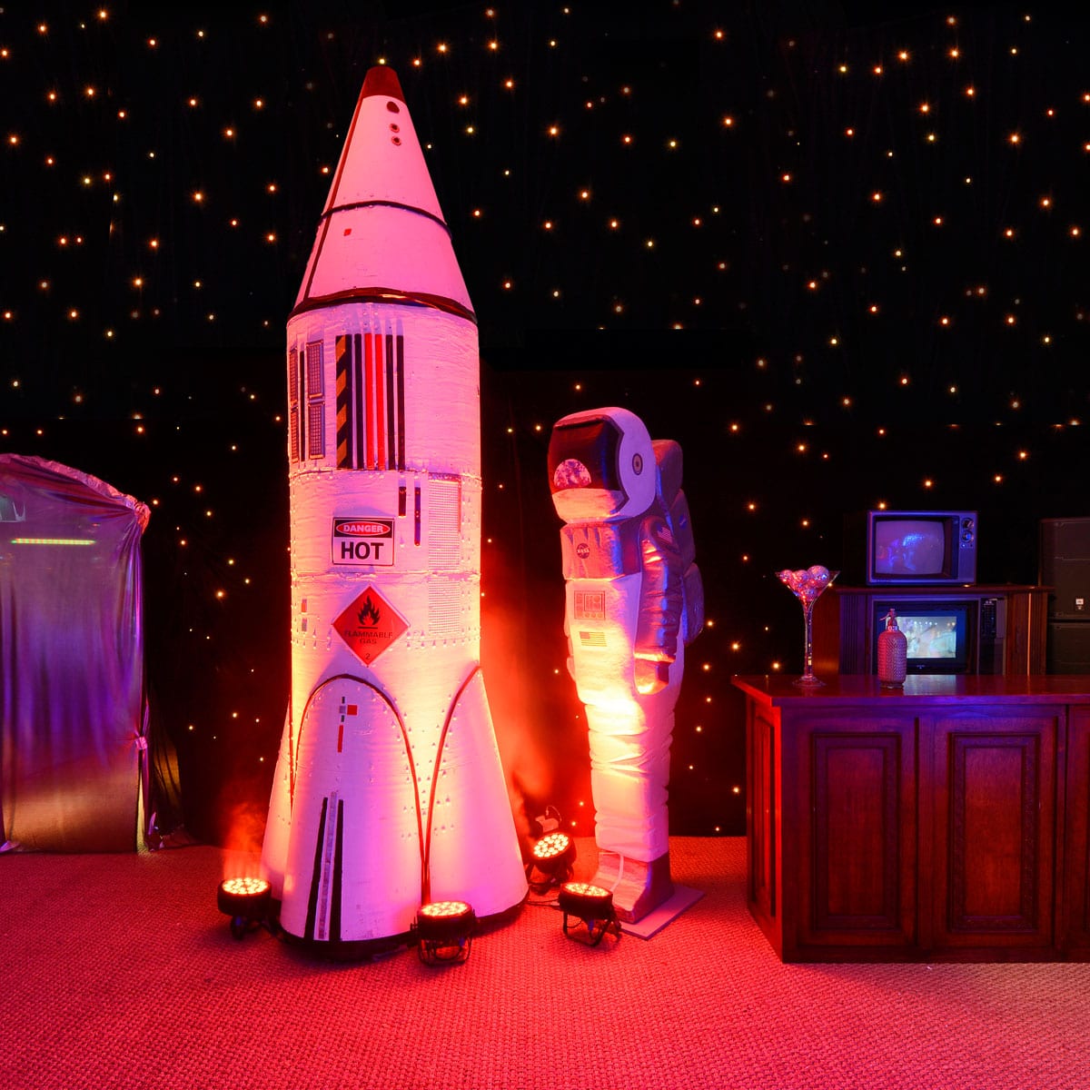 Star Cloth (3x6m runs) with LED lights to create "star" effect.
