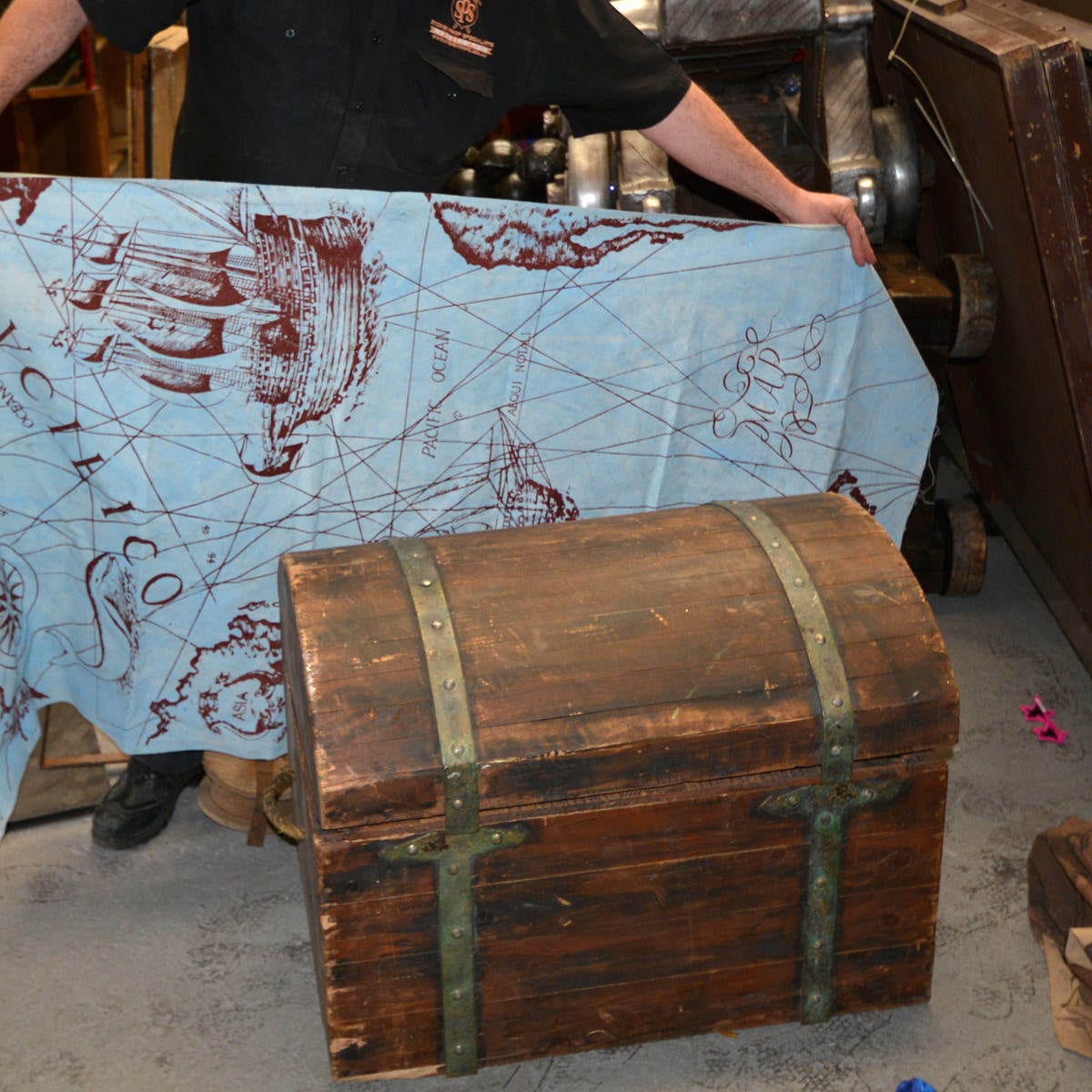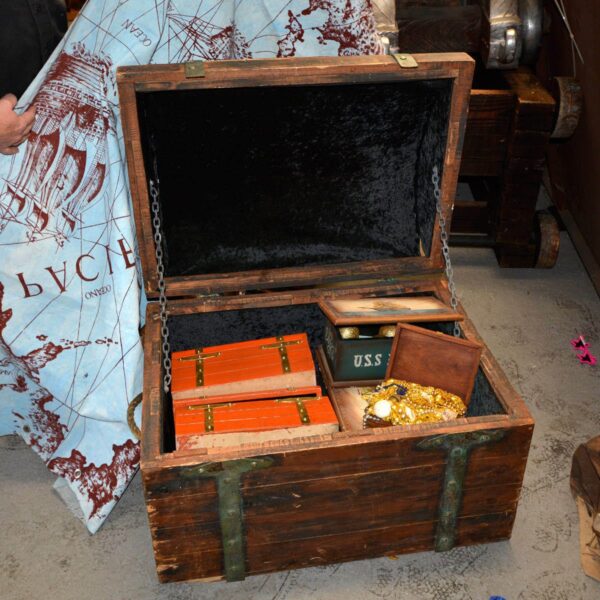 Trunk with metal straps. Rustic style timber with metal straps - bands.
