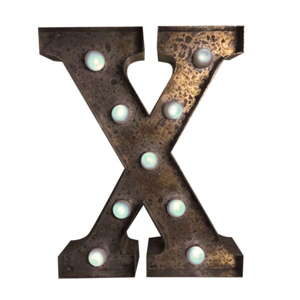 Marquee Light in rust vintage finish. Comes with LED globes.