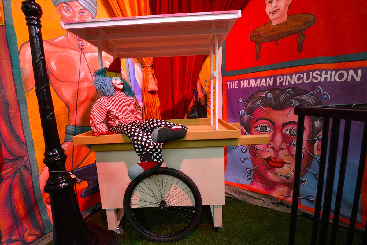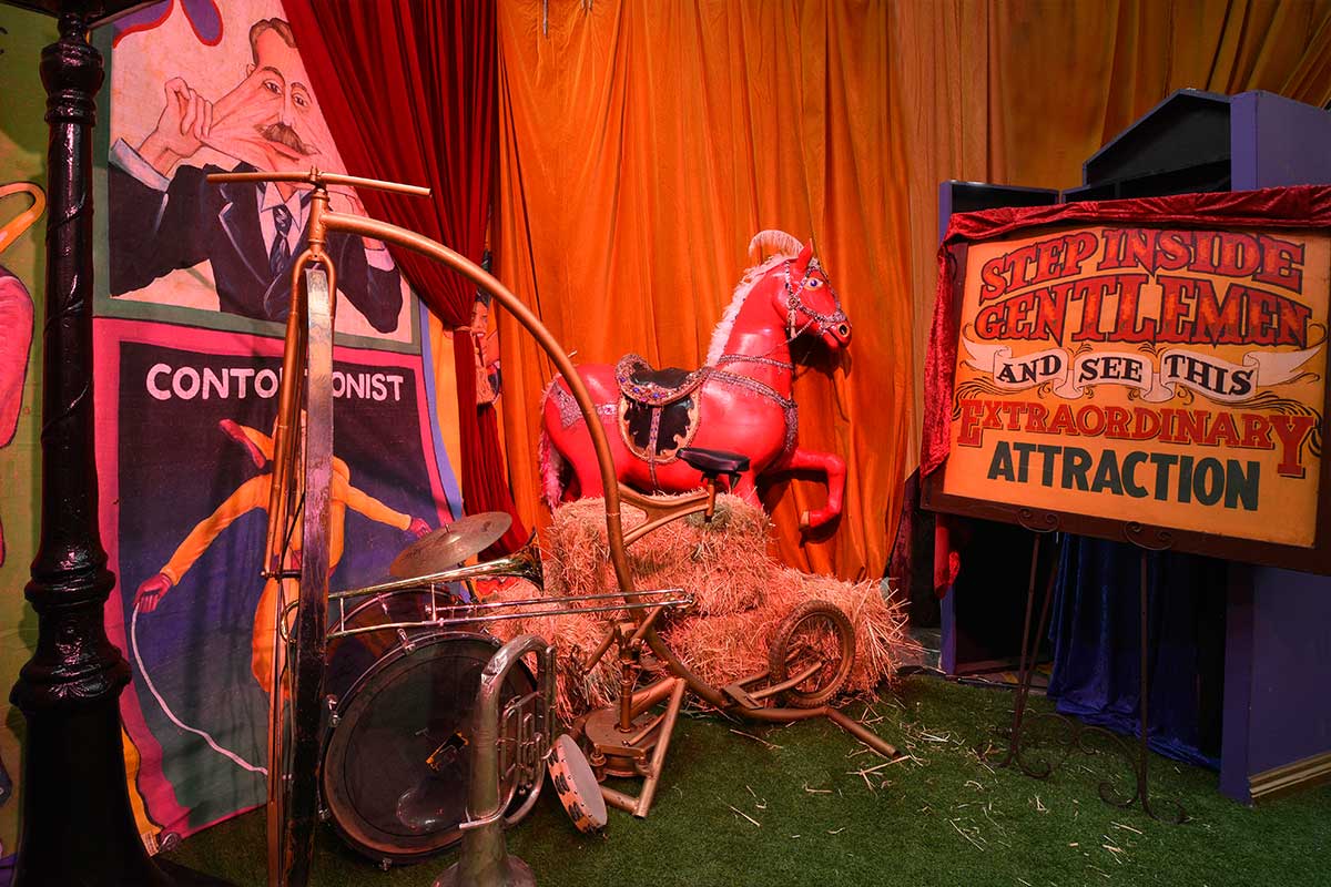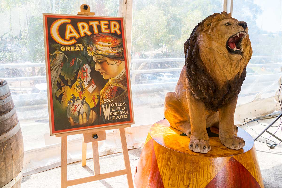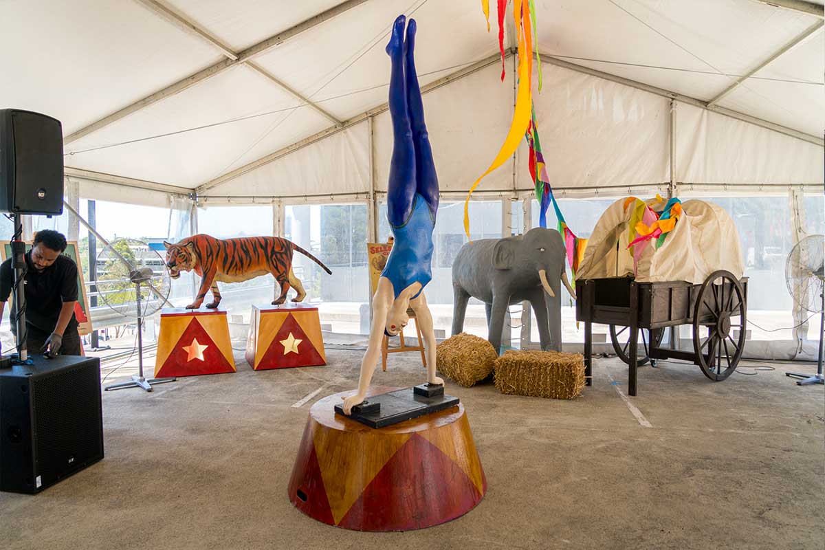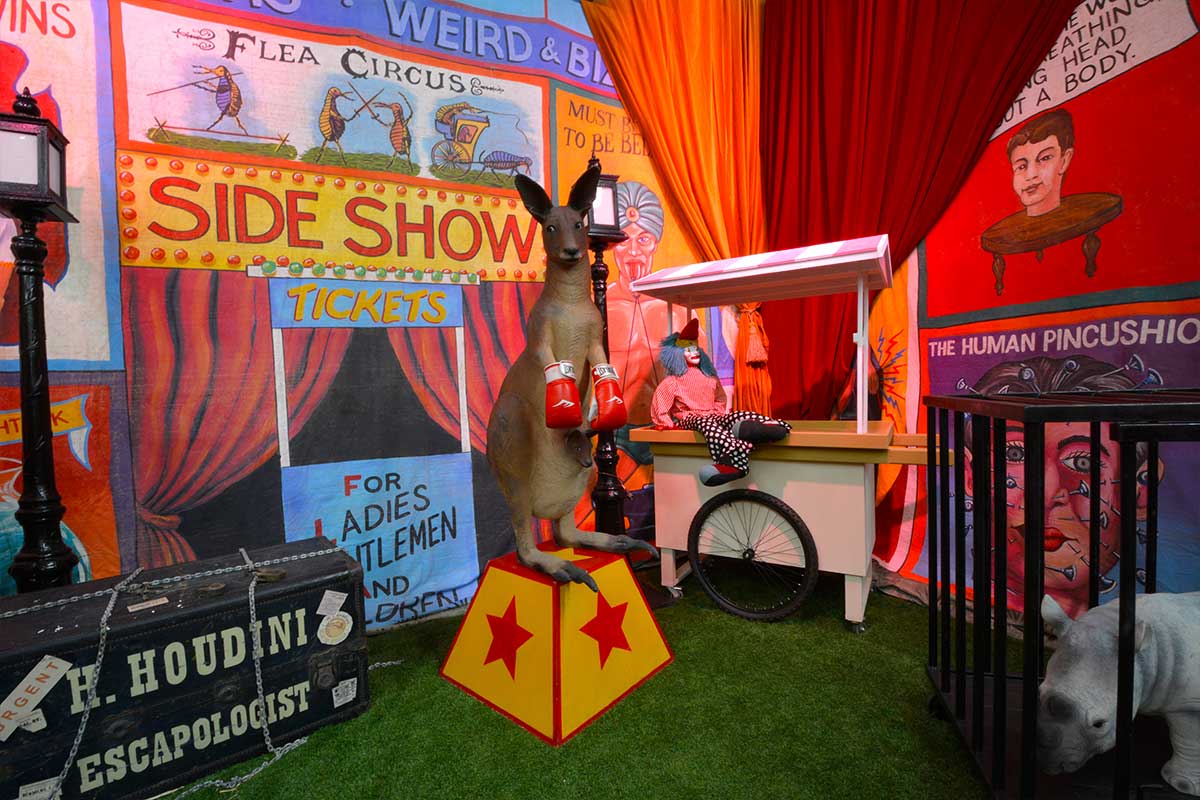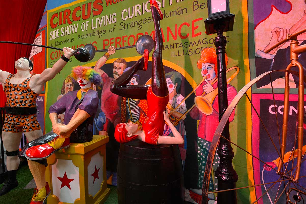 Brightly painted circus podiums, plinths, funny mirrors, animal cages, hay bales, barrels and sideshow alley features are used to style the space. Add a Box Office, pretzel stand and kissing booth along with a chocolate wheel and raffle barrel to engage and surprise your guests. Complete the theme with exotic animals such as zebras, elephants, giraffes, rhinoceros, lions, tigers; colourful carousel horses, a strong man and a variety of clowns and acrobats. Food service carts and sellers trays can be supplied as well as tables and seating, table decor, lighting, star cloths, velvet drapes and red carpet.