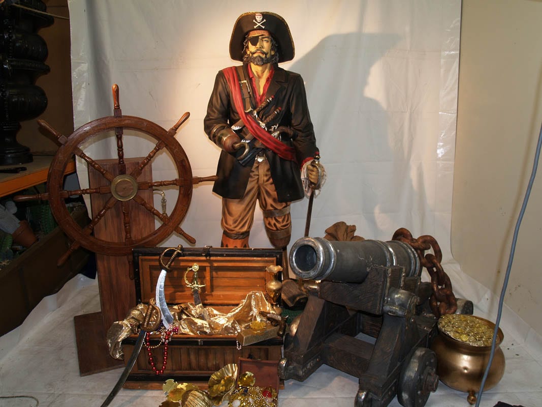 Pirate on Treasure Chest Statue